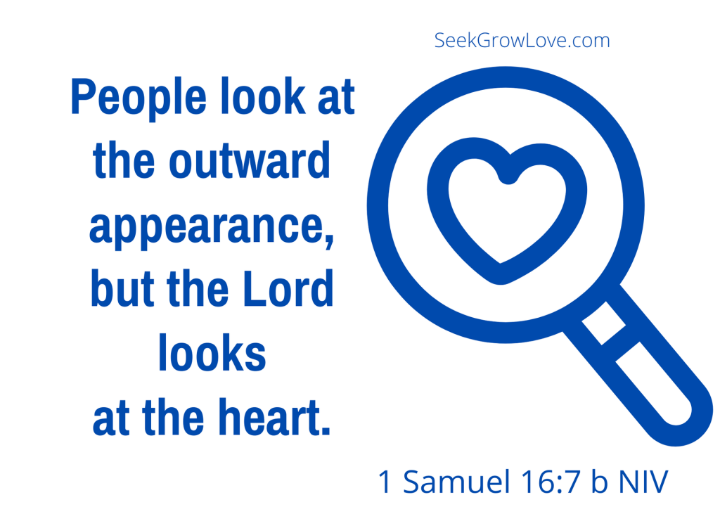“But the Lord said to Samuel, ‘Do not consider his appearance or his height, for I have rejected him. The Lord does not look at the things people look at. People look at the outward appearance, but the Lord looks at the heart.’” (1 Samuel 16:6-7).