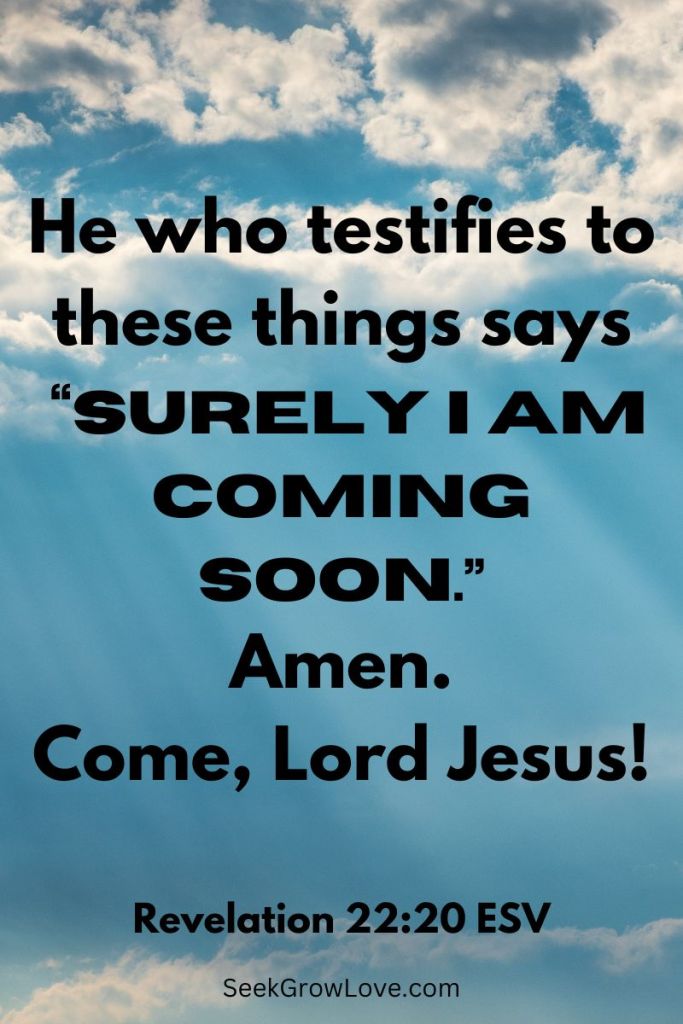 Verse 12 says, “Look, I am coming soon! My reward is with me, and I will give to each person according to what they have done. ” What have you done? What do you think Jesus wants you to still do?