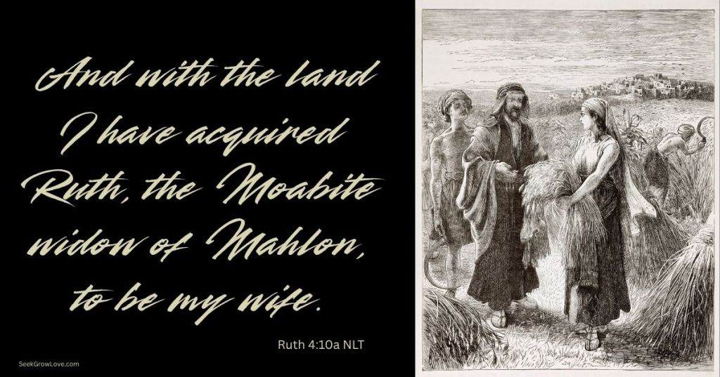 Then Boaz said, “On the day you buy the field from Naomi, you will acquire Ruth the Moabitess, the wife of the deceased man, to perpetuate the man’s name on his property.”