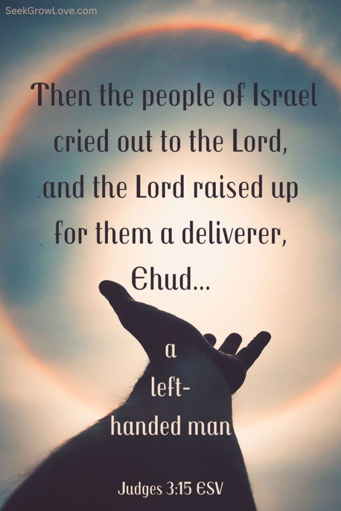 The Lord selected leaders (“judges”) to help guide the people in His ways, but the Israelites ignored the judges and continued worshipping gods, doing evil even more so after each judge died. So, the Lord gave the people over to their enemies. In Judges 3:14, we find the Israelites being ruled by Eglon, the Moabite king, for almost two decades. The people finally called out to the Lord to save them, and He sent them Ehud as their leader/judge.